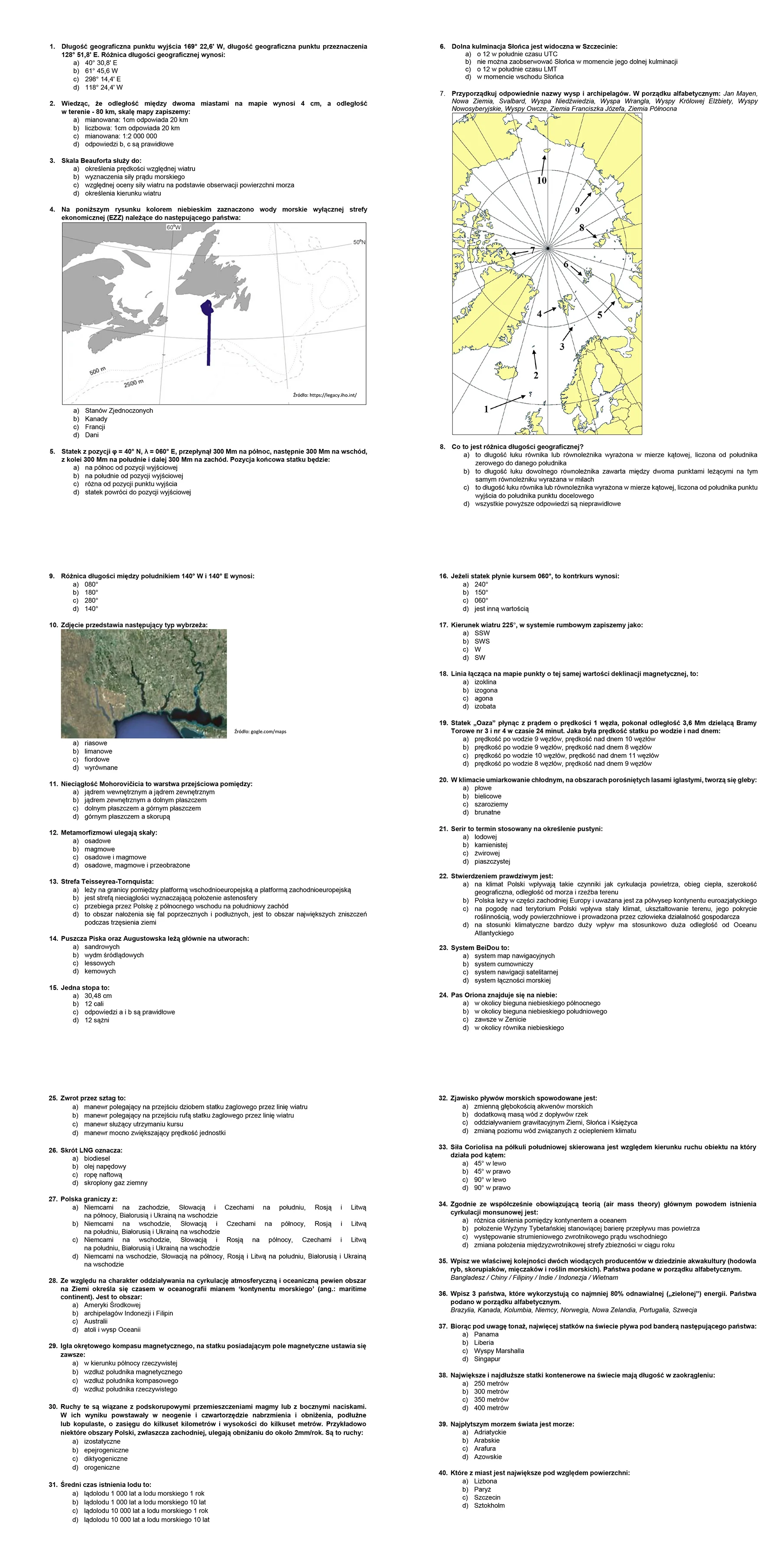 - Przejrzyj zagadnienia z: geografii fizycznej i społeczno-ekonomicznej (zakres rozszerzony), podstaw meteorologii i oceanografii morskiej, kartografii i pracy z mapą, orientacji w terenie i nawigacji podstawowej (kursy, namiary, odległości, jednostki morskie).